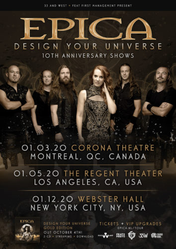 Epica has a special tour on the horizon, with the Design Your Universe 10th Anniversary Tour set for Europe in the fall – now, the Symphonic Metallers have just announced three exclusive shows in North America as part of this tour, as they plan to hit Montreal, Los Angeles, and NYC in early January (the 3rd, 5th, and 12th, respectively). Simone Simons says of the tour, “Our highly acclaimed album Design Your Universe is 10 years old and that calls for a celebration. And of course the US and Canada should be part of our anniversary tour as well! We will be doing some exclusive shows where we will be playing many DYU songs. I hope you’ll come and join the party!” In light of the tour, Epica will also unveil a remastered and remixed “Gold Edition” of Design Your Universe, including a brand-new acoustic bonus disc, set for release on October 4th. http://www.epica.nl/ has all the info.