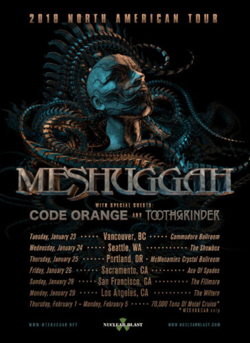 Meshuggah are on their way to a North American tour to kick off the New Year. Starting off in Vancouver on January 23rd, the six-show run leads these Swedish Extreme Metallers onto the 70,000 Tons of Metal Cruise in early February. Joining them along this trek – before they hit the boat, that is – will be Code Orange and Toothgrinder. Meshuggah recently received their first Grammy® nomination for “Best Metal Performance” in light of The Violent Sleep of Reason, the band’s most recent studio album which also happens to be the one they’re touring in support of. For further details on the tour dates and more, visit: the Official Meshuggah Facebook page.