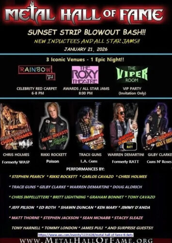 January 22nd, 2026, the metal world gathered for the annual tradition of the Metal Hall of Fame, but this time as an L.A.-based Blowout Bash, taking over the Sunset Strip at the Rainbow, The Roxy, and The Viper Room. The takeover celebrated the legacy of 80’s rock and metal that thrives on the Sunset Strip, highlighting bands like Ratt, Poison, W.A.S.P, Guns N’ Roses, and L.A. Guns.
